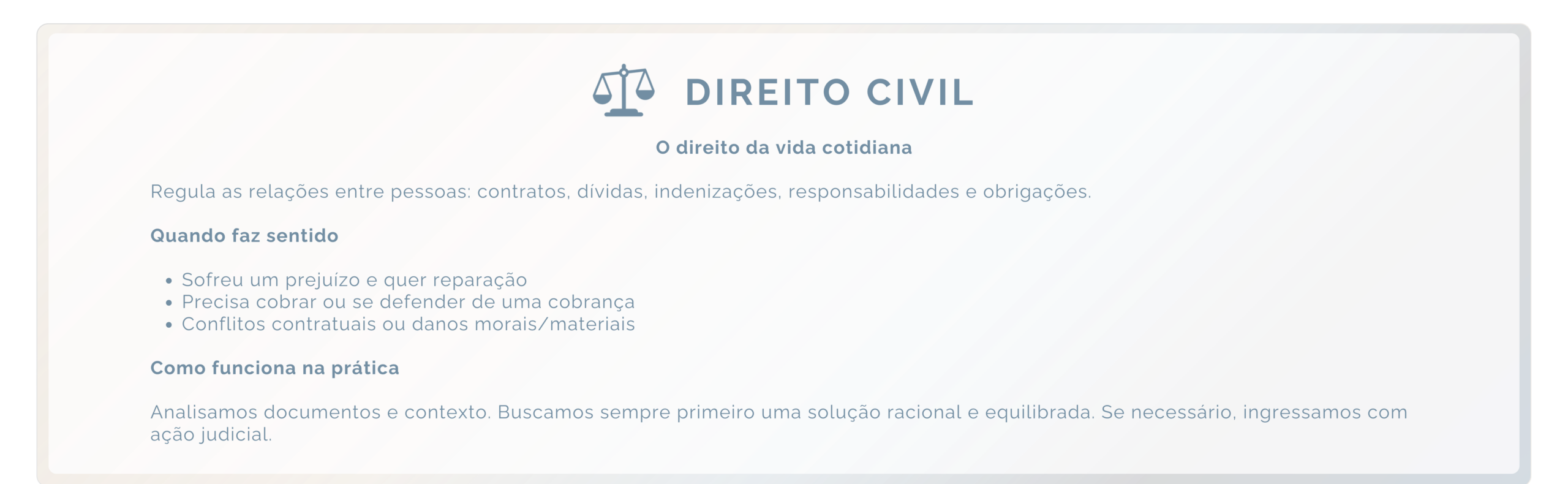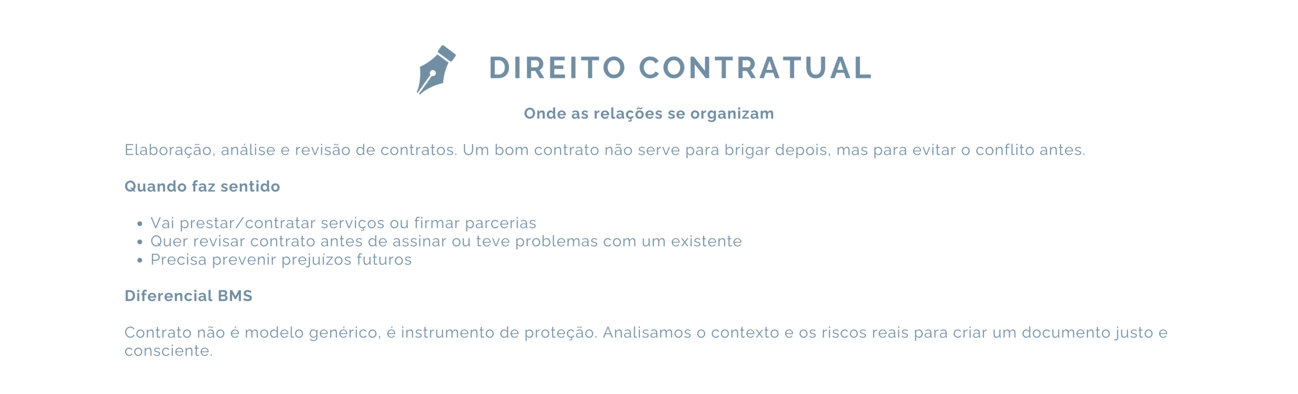 Na BMS, antes de indicar um caminho, nós escutamos. Depois, analisamos. E só então orientamos a(s) melhor(es) área(s) de atuação para o seu caso.